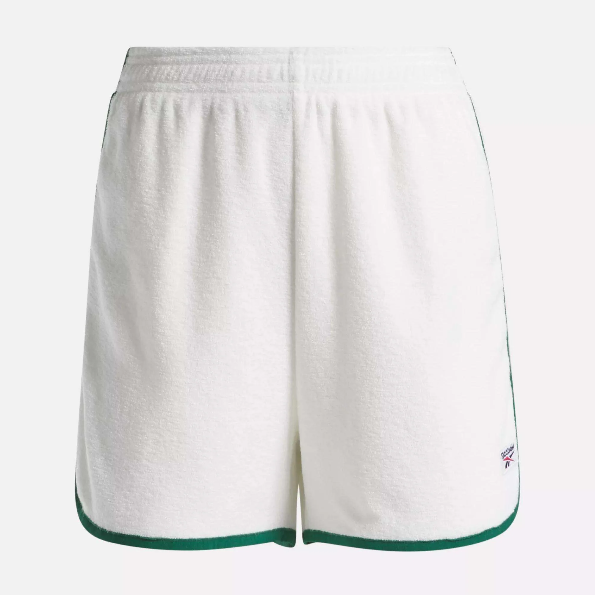 A modern twist on classic tennis style, these women's Reebok shorts put a fresh spin on a casual look. They're made from an ultra-soft towel terry fabric that stays comfortable through and through. Vintage-inspired embroidery on one leg complements the contrast binding. Pair them with your favorite tee to hang at home or even meet up with friends for a low-key tennis match.